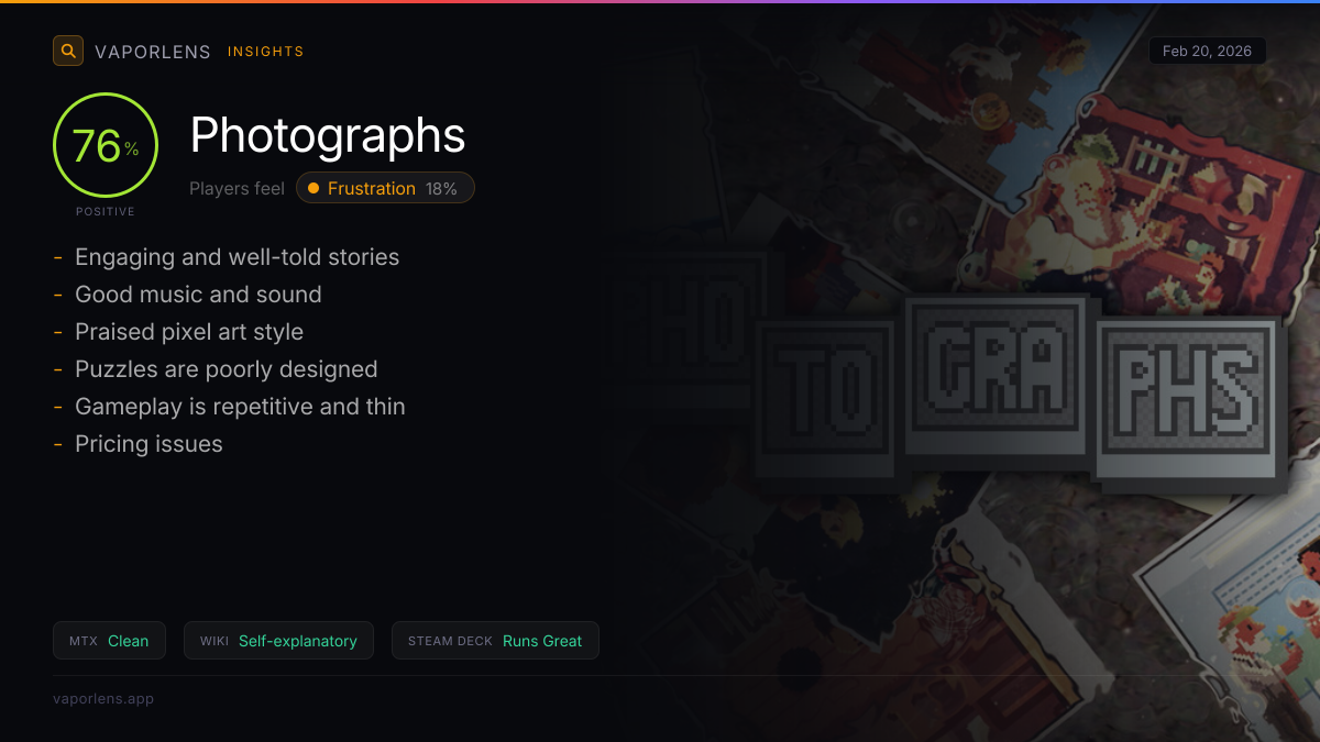 Players consistently recommend the game for its strong narrative and variety of puzzles, highlighting its appeal to fans of story-driven and indie games.