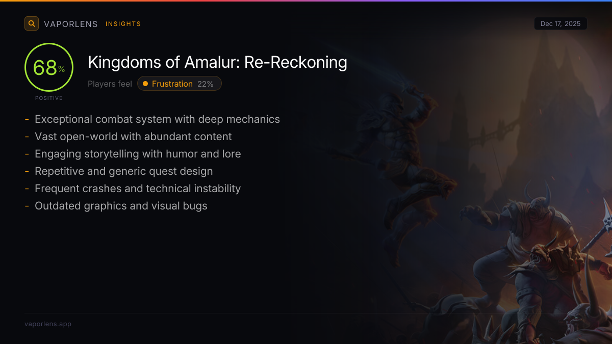 | Despite minor shortcomings, the game is widely regarded as a polished and enjoyable experience. Players highlight its replayability, engaging gameplay, and value for money, making it a recommended title for both casual and dedicated RPG fans. | 35% |