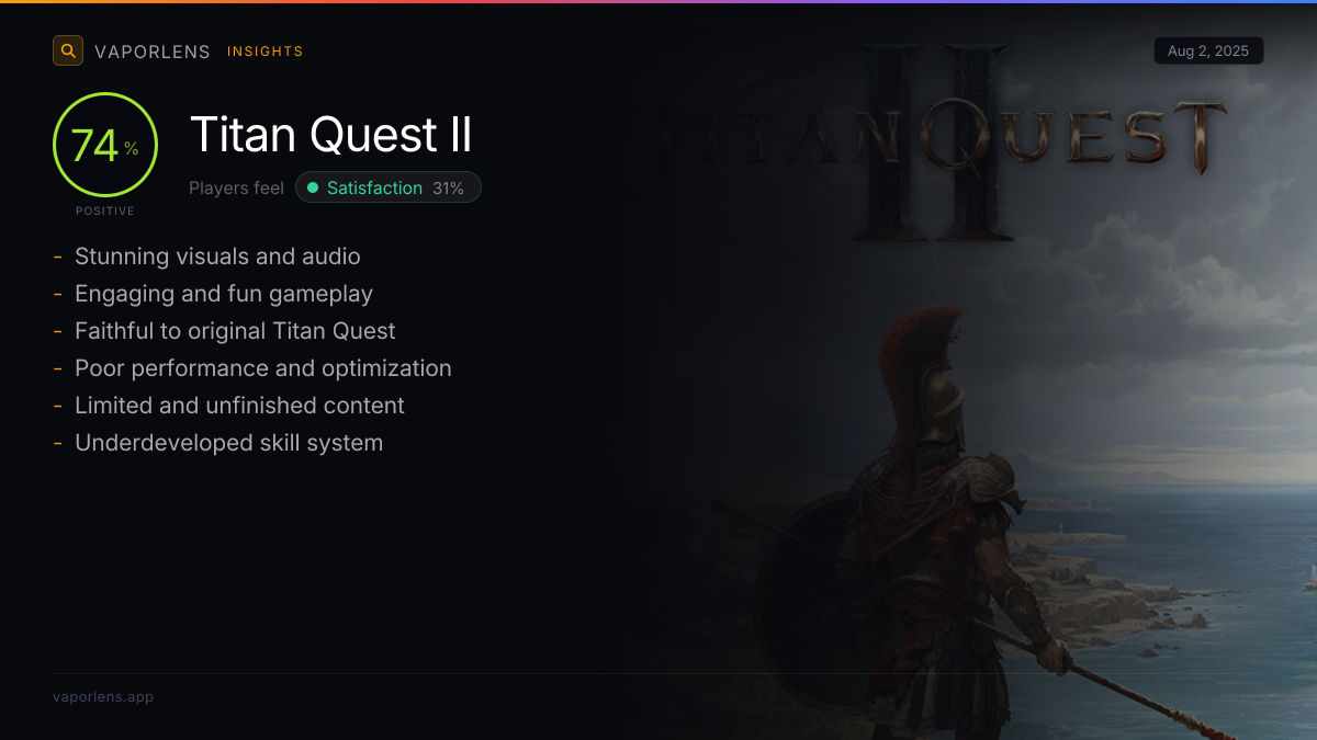 - The game successfully captures the essence and nostalgic feel of the original Titan Quest, with many players feeling it's a true and worthy successor. It retains core elements while introducing modern improvements, striking a balance between familiarity and freshness.