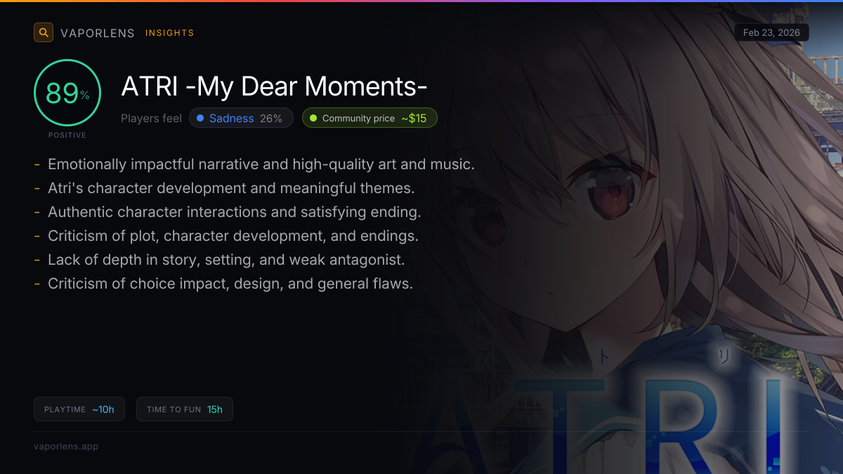 Recommended for story and character lovers