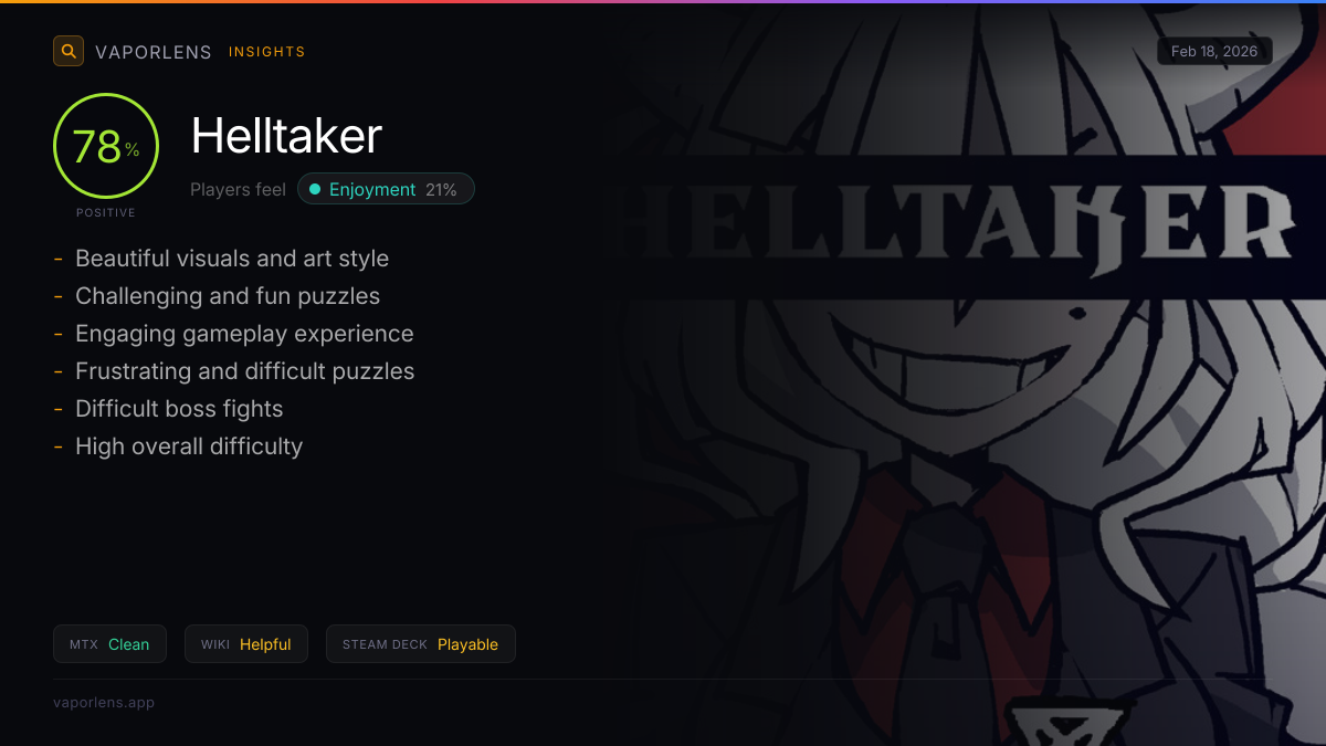 The analysis of user feedback for the Steam Deck experience with this game reveals several key themes. Controller support issues are a significant problem, with users reporting lack of precision and responsiveness, making the game difficult to play. Launcher issues have also been noted, which can hinder the overall experience. However, there is positive feedback regarding the game's performance, with many users finding it smooth and responsive on the Steam Deck. Score: 50 / 100