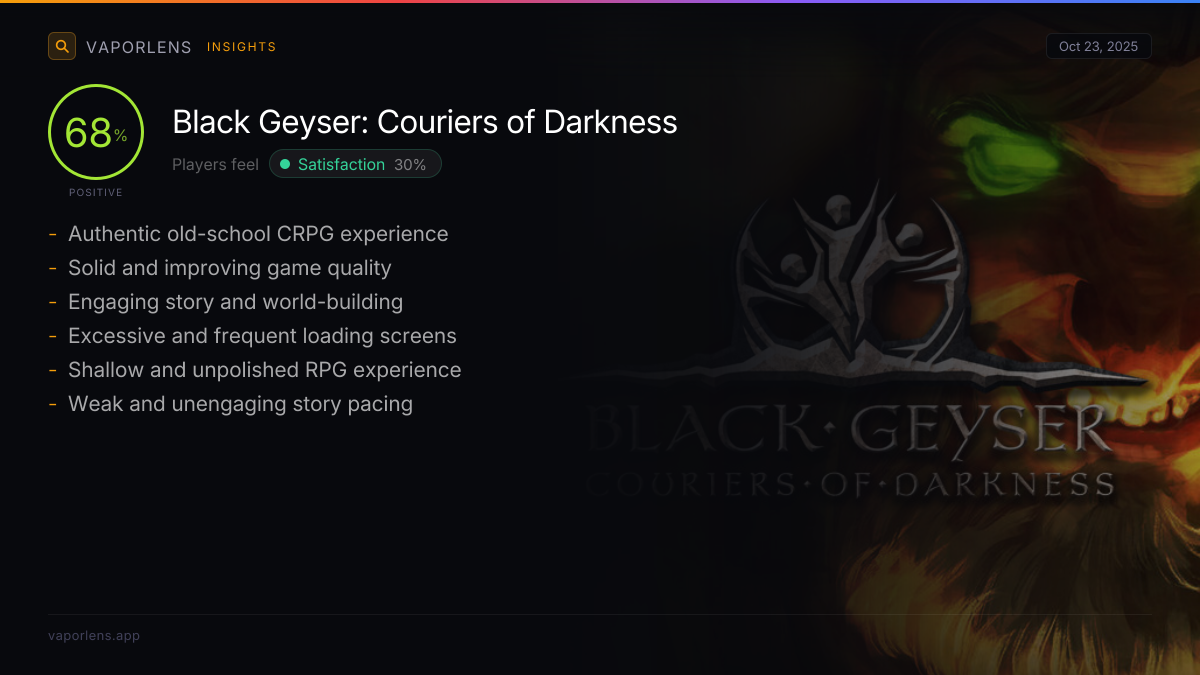 | Players consistently praise the game for faithfully capturing the essence of classic CRPGs like Baldur's Gate and Pillars of Eternity, offering familiar gameplay mechanics, isometric design, and a nostalgic feel. It's seen as a spiritual successor and a love letter to the genre. | 97% |