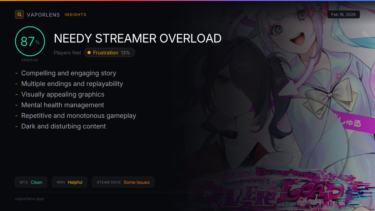 The analysis of user feedback reveals significant issues with cloud save functionality and user interface responsiveness, particularly on the Steam Deck. These problems lead to a frustrating user experience, with progress loss and difficulty in navigating the game. Score: 75 / 100
