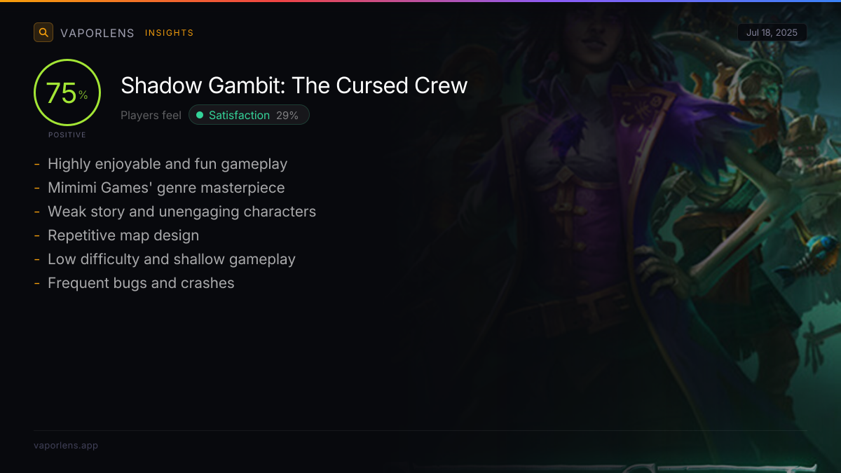 | Players consistently praise the game for its high entertainment value, engaging gameplay, and overall fun experience. Many found it immersive and enjoyable, even those new to the genre. | 100% |