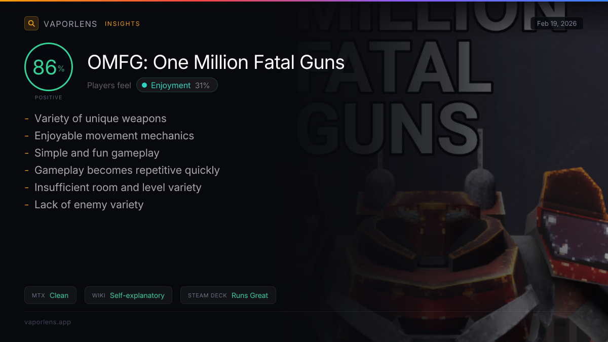 Players enjoy the game primarily due to its responsive and unique movement mechanics, such as sliding and wall running, combined with a variety of powerful and creative weapons. The fun and addictive gameplay loop, along with the casual and entertaining nature of the game, also contribute significantly to this enjoyment.