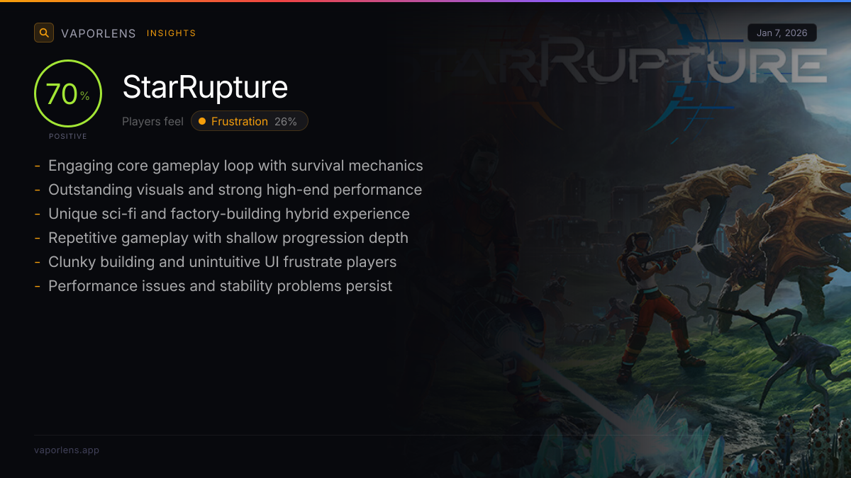 Excitement stems from the game's dynamic and immersive blend of survival, automation, and exploration mechanics. Players highlight the addictive potential of base-building, combat, and environmental challenges (e.g., solar flares), as well as the anticipation for future updates. The unique sci-fi setting, engaging gameplay loops, and comparisons to beloved titles like *Satisfactory* fuel optimism about the game's long-term potential.