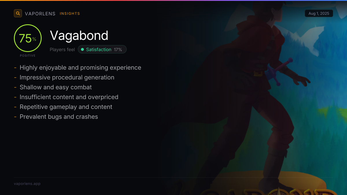 | There is general excitement surrounding the release of 'Vagabond,' indicating a positive reception and anticipation for the game's continued development and future content. | 2% |