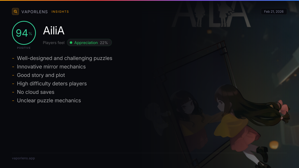 Players are satisfied with the innovative use of mirrors and well-designed puzzle mechanics. The game's moderate difficulty and cute character designs also contribute to a positive experience.