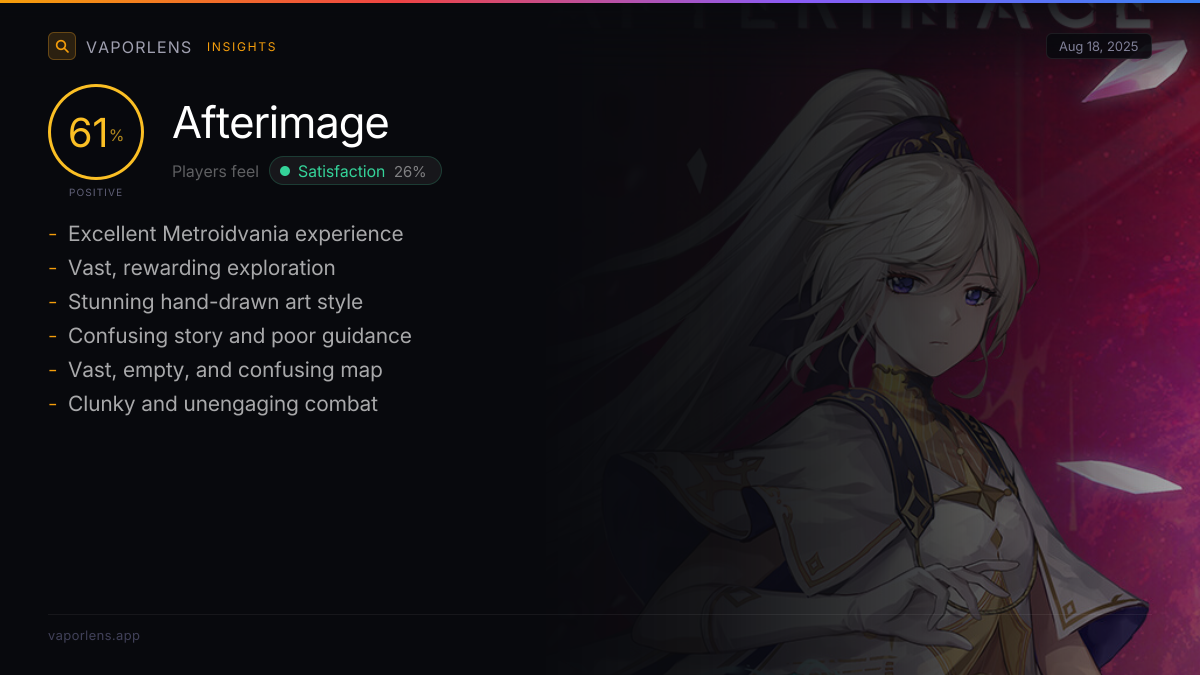 Disappointment arose from the game's perceived mediocrity, particularly its unfulfilling story, repetitive combat, and unrewarding exploration despite a large volume of content. Players also expressed regret over the purchase due to design flaws and a general lack of polish that failed to meet expectations for a Metroidvania title.