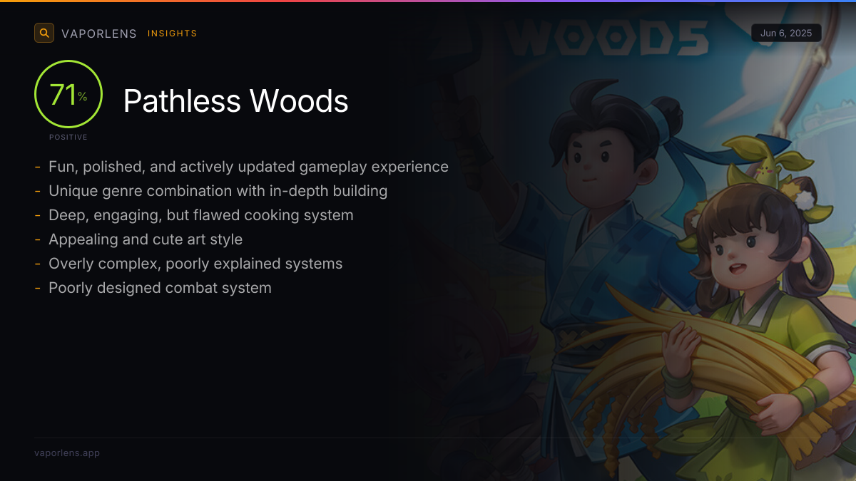 - Reviewers appreciate the game's blend of genres and mechanics, drawing comparisons to popular titles like Valheim, Don't Starve, and Zelda. The game combines farming, base building, crafting, combat, and survival elements into a cohesive and engaging experience. The unique combination sets it apart from other games in the genre.