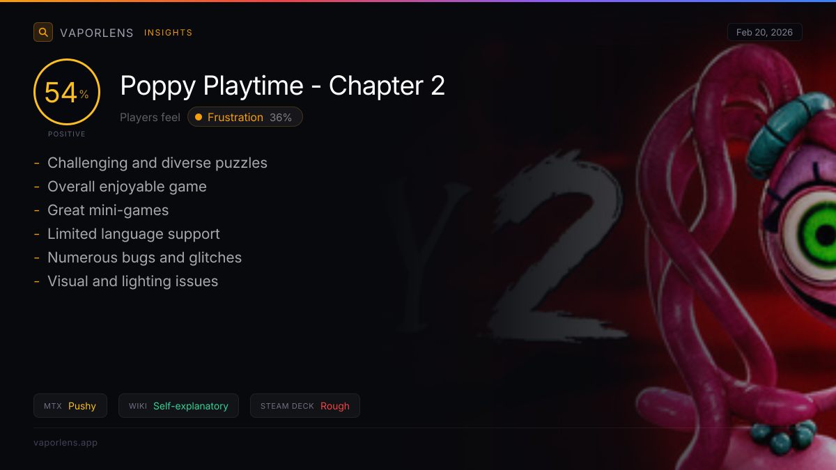 The analysis of user feedback reveals significant issues with the Steam Deck experience for this game. Key problems include control issues, localization and difficulty inconsistencies, and frequent crashes. These issues severely impact the user experience, making the game difficult to play and enjoy. Score: 90 / 100