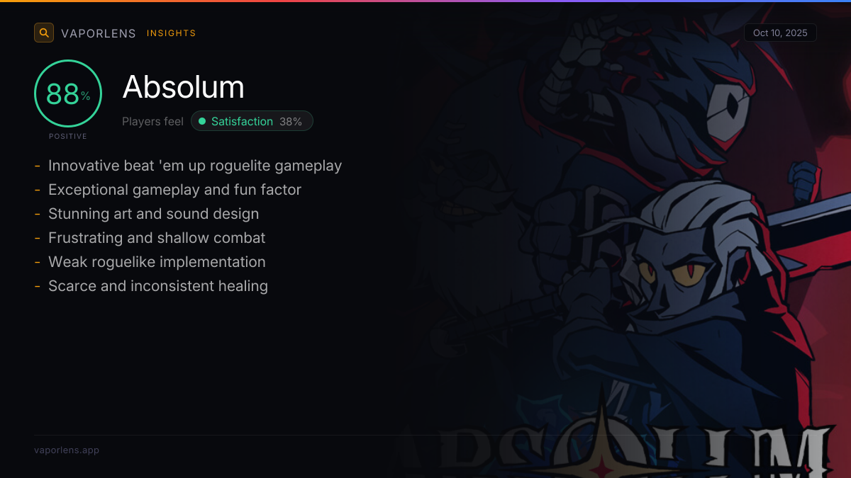 | Players consistently praise the game's core gameplay, describing it as incredibly fun, enjoyable, and addictive. The combat mechanics are highlighted as well-designed, satisfying, and offering a good balance of challenge without frustration. The overall game feel, foundation, and execution are considered top-tier, making it a highly engaging experience. | 86% |
