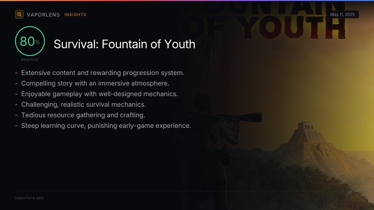 The game is highly recommended, especially for fans of the survival genre, with many reviewers drawing comparisons to other popular titles like Green Hell, Subnautica, and The Long Dark. Reviewers emphasize that the game offers a unique and enjoyable experience within the genre, making it a worthwhile addition to any survival enthusiast's library.