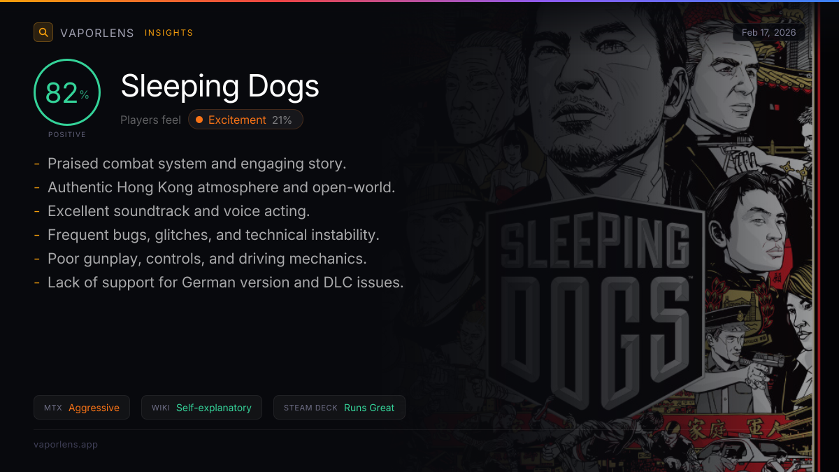 The analysis of user reviews for Sleeping Dogs reveals significant concerns regarding the game's monetization practices. A prominent issue is the separation of essential content into Day-1 DLC, which users feel should be part of the base game. This practice is seen as a cash grab, especially for those who have already purchased earlier versions of the game. Additionally, there is confusion and frustration around the purchase options, with users expressing dissatisfaction over having to repurchase content or navigate complex buying processes. Some reviews also highlight that certain DLCs are considered crucial for an optimal gaming experience, suggesting that the base game may be incomplete without these additional purchases. Score: 75 / 100