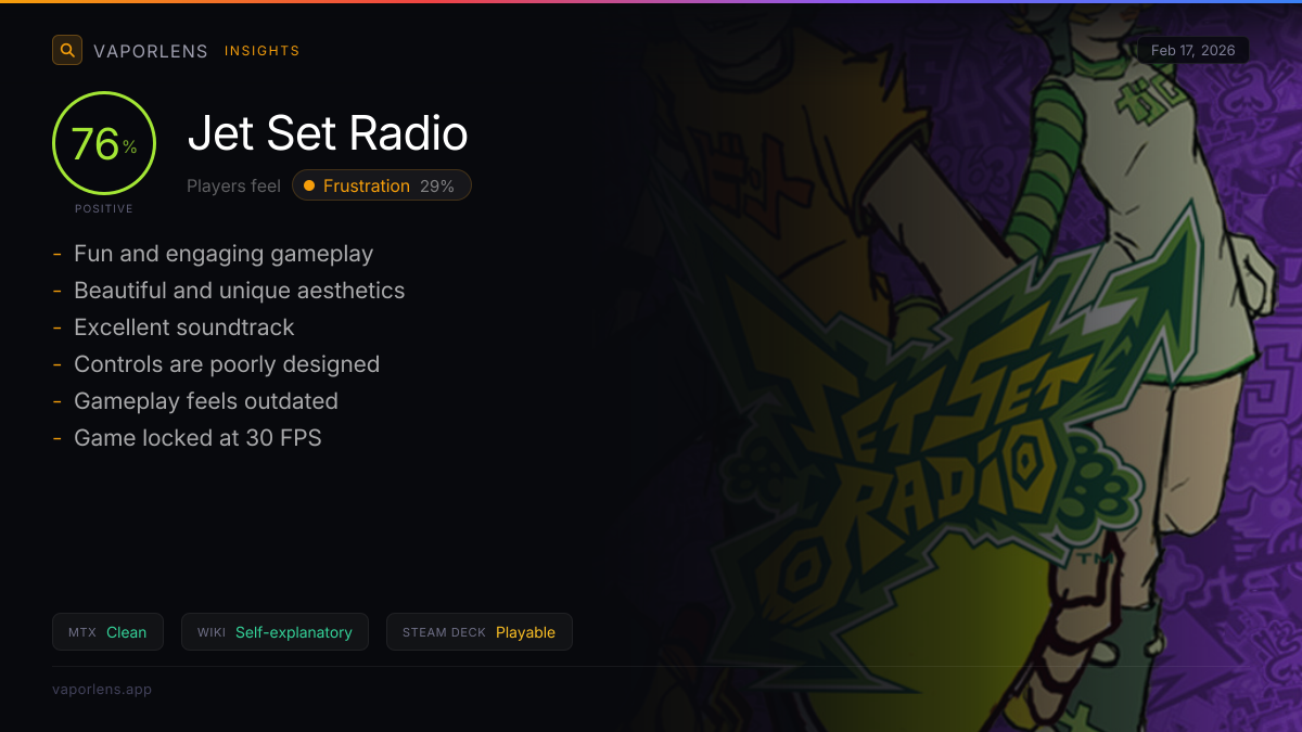 The analysis of user feedback for the game reveals several key issues. The most prominent problem is with the game's controls, which are frequently described as clunky, bad, or difficult to use. This is a significant concern as controls are a fundamental aspect of gameplay. Additionally, the game's performance is criticized for being locked at 30fps, which can be nauseating and unpleasant for some players. There are also mentions of DRM issues, specifically with DENUVO, which can add friction to the user experience. These issues collectively indicate that while the game may have nostalgic or artistic value, it suffers from technical and design flaws that hinder the overall experience. Score: 50 / 100