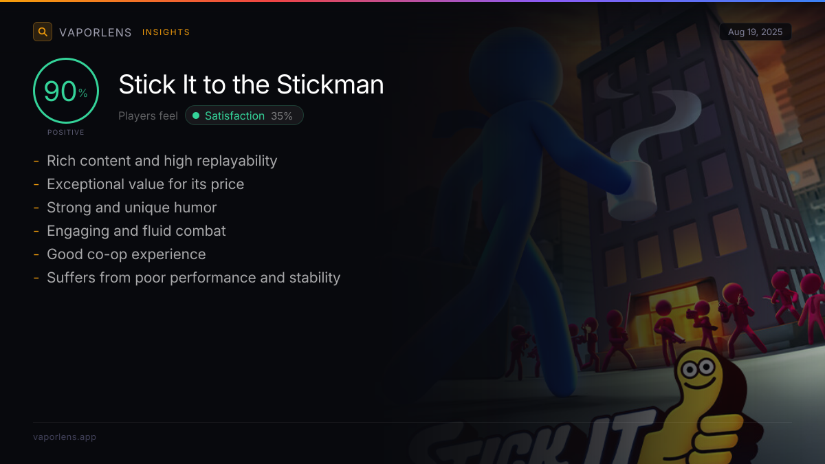 Players describe the game as a unique combination, drawing comparisons to titles like Stickfight and Going Under, and noting its evolution from simpler concepts like One Finger Death Punch.