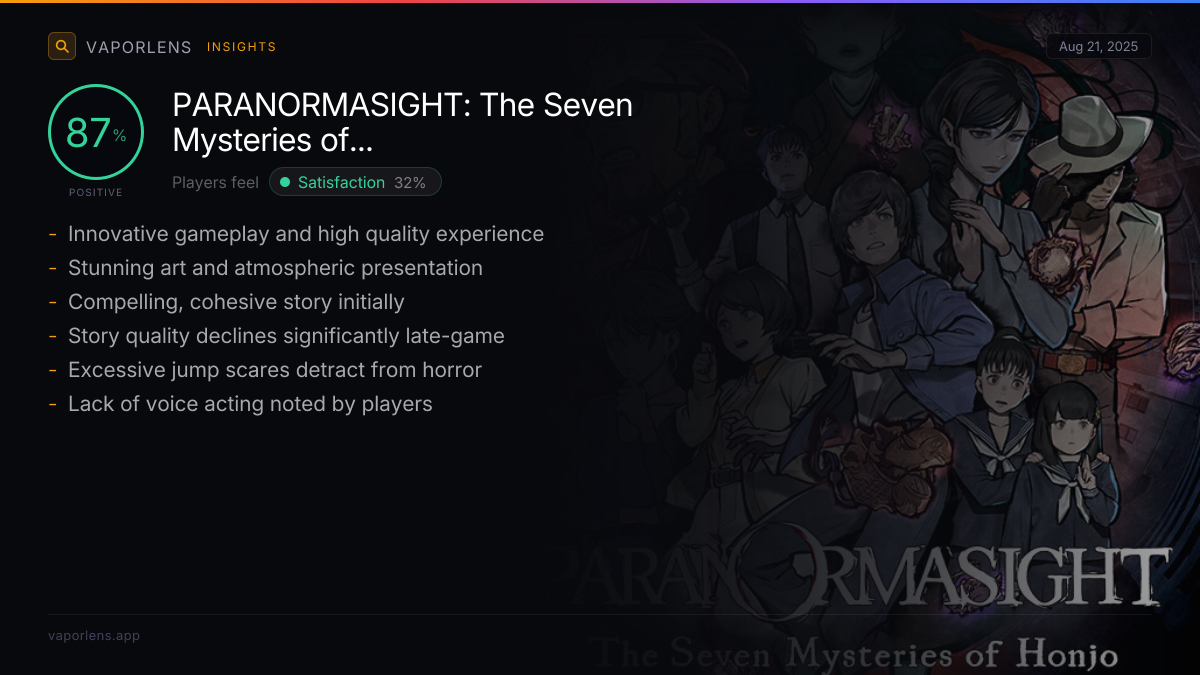 Players felt satisfied due to the game's high overall quality, including its engaging and intricate story, well-developed characters, and innovative gameplay mechanics. The strong art style, immersive atmosphere, and excellent music also contributed significantly to a fulfilling experience, often exceeding expectations and providing good value for money.