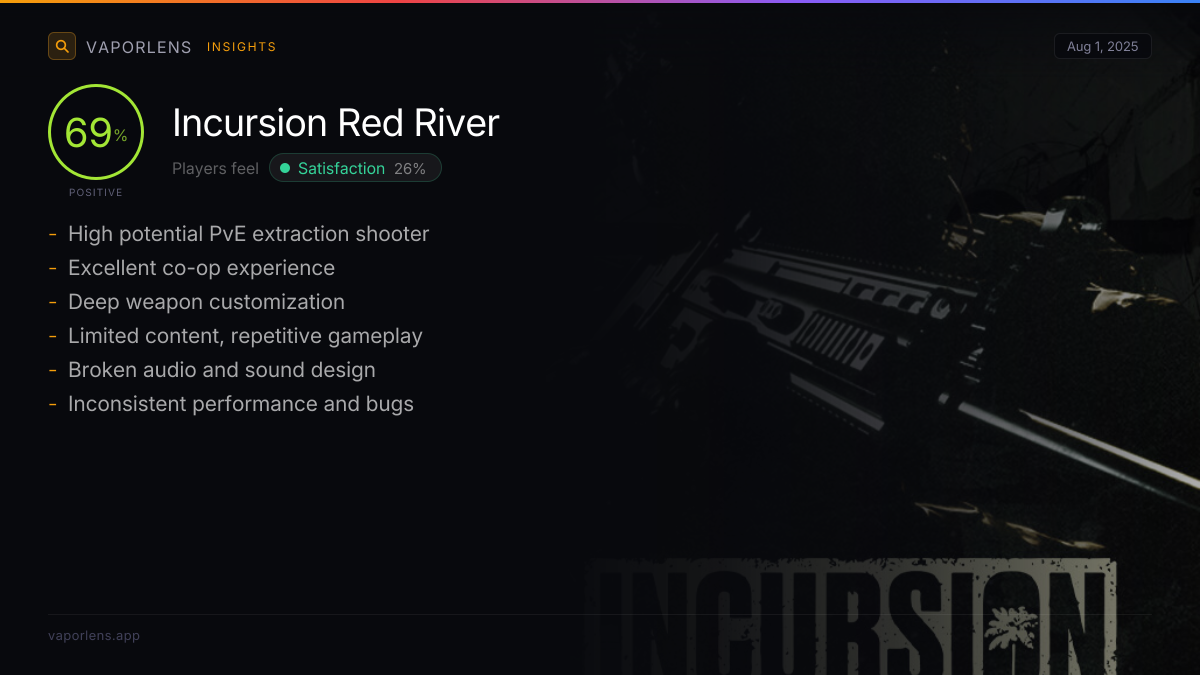 | A major highlight is the game's focus on PvE extraction shooter gameplay, offering a less stressful alternative to PvP-heavy titles like Tarkov. Players appreciate the absence of cheaters and 'sweaty' competitive environments, making it ideal for solo or co-op play. | 59% |