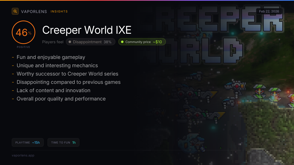 Players express love for the Creeper World series and its long-standing release history, appreciating the fundamentals and consistent quality.