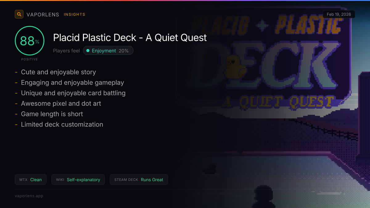 Players appreciate the game's card battling mechanics and story, finding them engaging and fun. The cute art style and relaxing, puzzle-like gameplay also contribute to a satisfying experience.