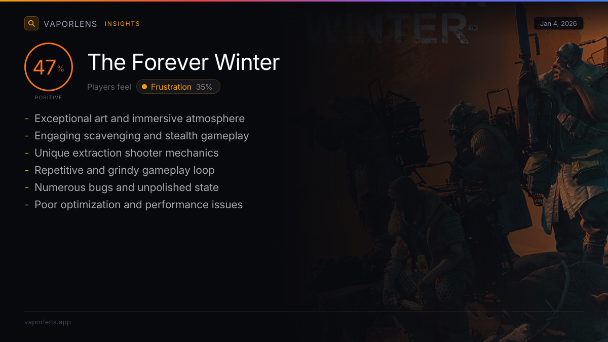 Players experience significant frustration due to persistent technical issues, including crashes, performance lag, and game-breaking bugs, even on high-end hardware. The gameplay mechanics are often described as clunky, poorly explained, or unfair, such as janky enemy behavior, unclear progression systems, and punishing progression loops that hinder enjoyment.