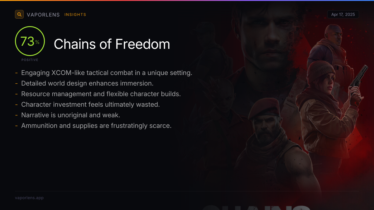 The game is frequently compared to XCOM and other tactical RPGs like Mutant Year Zero and Gears Tactics, offering similar turn-based combat with strategic elements. It also incorporates dark themes reminiscent of Resident Evil and a post-apocalyptic setting, creating a familiar yet distinct experience for fans of the genre.