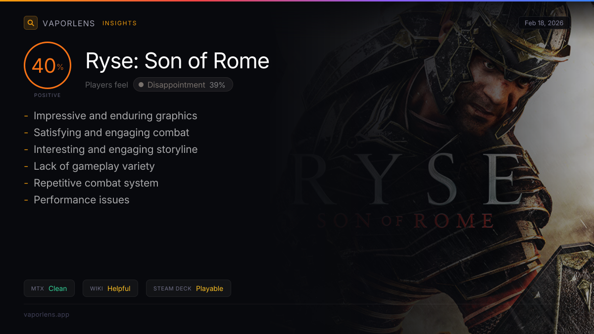 The game has received mixed feedback with notable criticisms on historical inaccuracies, repetitive gameplay, and unclear instructions. Players appreciate the graphics and lore but are frustrated with the lack of historical accuracy and the need to consult external guides for gameplay mechanics. Addressing these issues could significantly improve the user experience. Score: 50 / 100