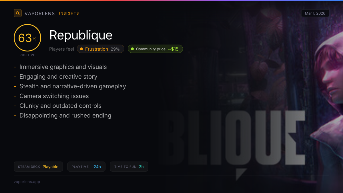 Recommended for stealth and narrative fans