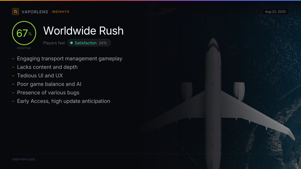 The game is generally well-received and recommended, especially for players who enjoy management games or are new to the transport network optimization genre. It offers a strong initial experience and is considered promising for its price point.