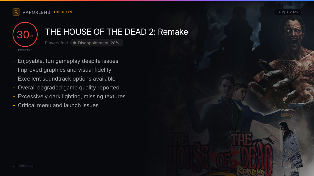 A significant portion of the player base consists of long-time fans of The House of the Dead series, especially the second installment. Many purchased the game purely for nostalgia, having played the original extensively in arcades or on the Dreamcast. There's a strong sentiment that the original remains unbeatable.