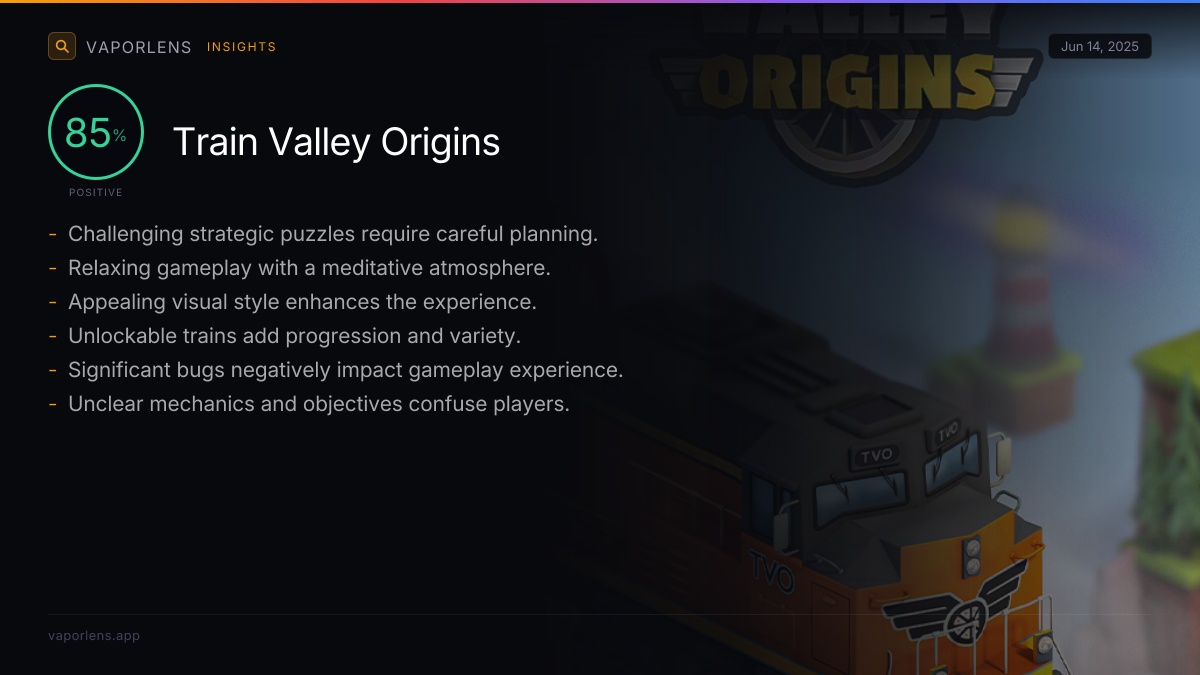 Many reviewers feel the game is a simplified, less polished version of Train Valley 2, with some even calling it a 'dumbed-down mobile version'. They cite inferior level design, graphics, and reduced gameplay depth as reasons for their disappointment, especially given its marketing as a new game.