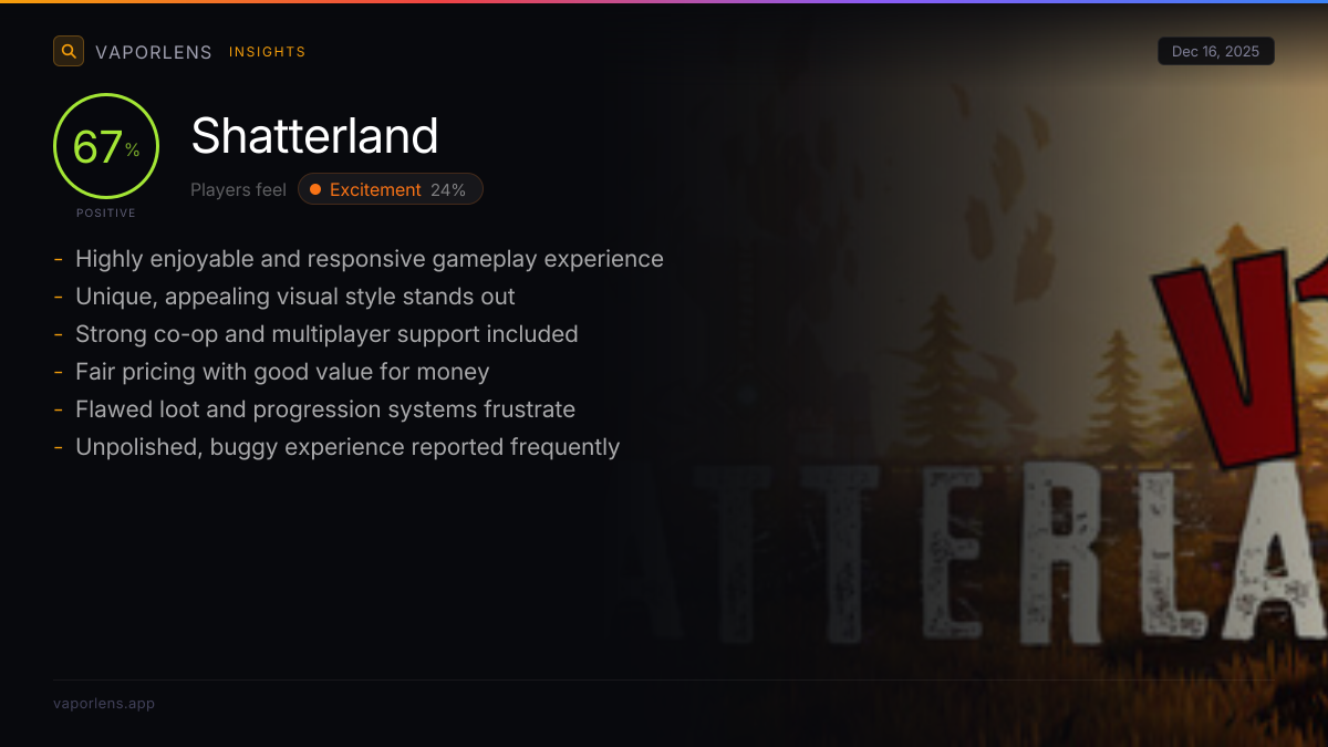 | Players consistently praise the game's fun, engaging, and smooth gameplay. Many highlight its fluid movement, solid combat, and enjoyable survival/adventure mechanics. The game's ability to retain interest over long play sessions and its replayability are frequently mentioned as strengths. | 99% |