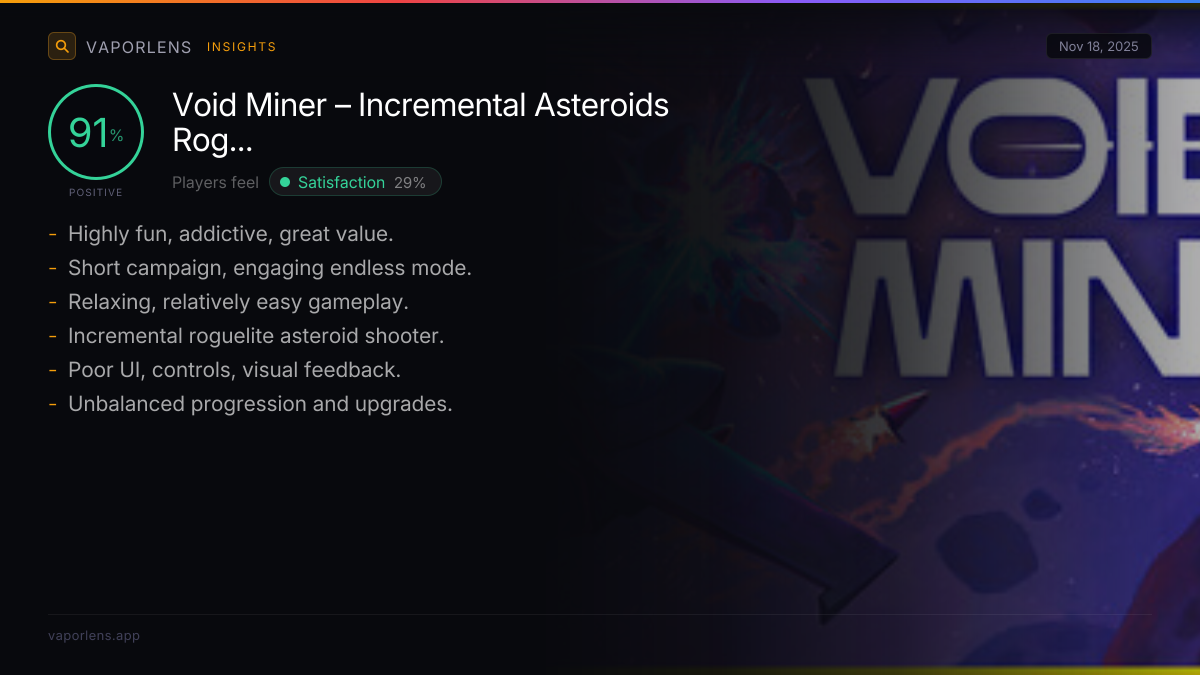 Players felt satisfied due to the game providing excellent value for its price, consistently meeting or exceeding expectations regarding quality, pacing, and gameplay length. Key elements like the responsive controls, addictive upgrade loop, and well-designed progression system contributed to a deeply enjoyable and rewarding experience.