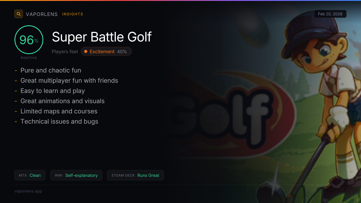 The excitement stems from the game's unique and chaotic take on golf, blending fun mechanics with multiplayer interactions. Players are also eager about future updates, new features, and the game's performance on platforms like Steam Deck.