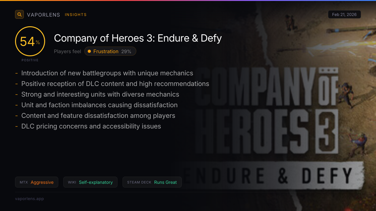 The analysis of user reviews reveals significant concerns about the DLC being overpriced, having poor balance and design, and including pay-to-win elements. These issues collectively contribute to a negative user experience and perception of the game's monetization practices. Score: 85 / 100