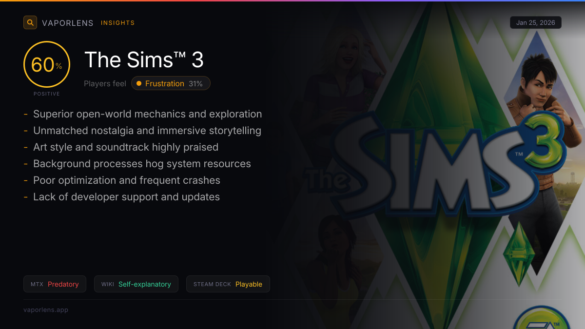 Steam review mix, revenue model, and refund leakage.