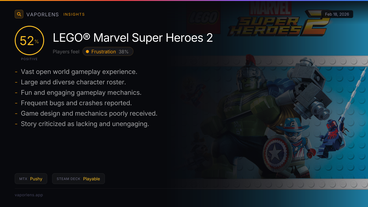 The analysis of user feedback reveals significant issues with the control scheme, including poor key assignments and controls not being saved, which severely impacts the user experience. While some users report a seamless experience on the Steam Deck, there are also technical issues related to processors with more than four cores. Overall, the control scheme issues are the most impactful and frequent complaints. Score: 50 / 100