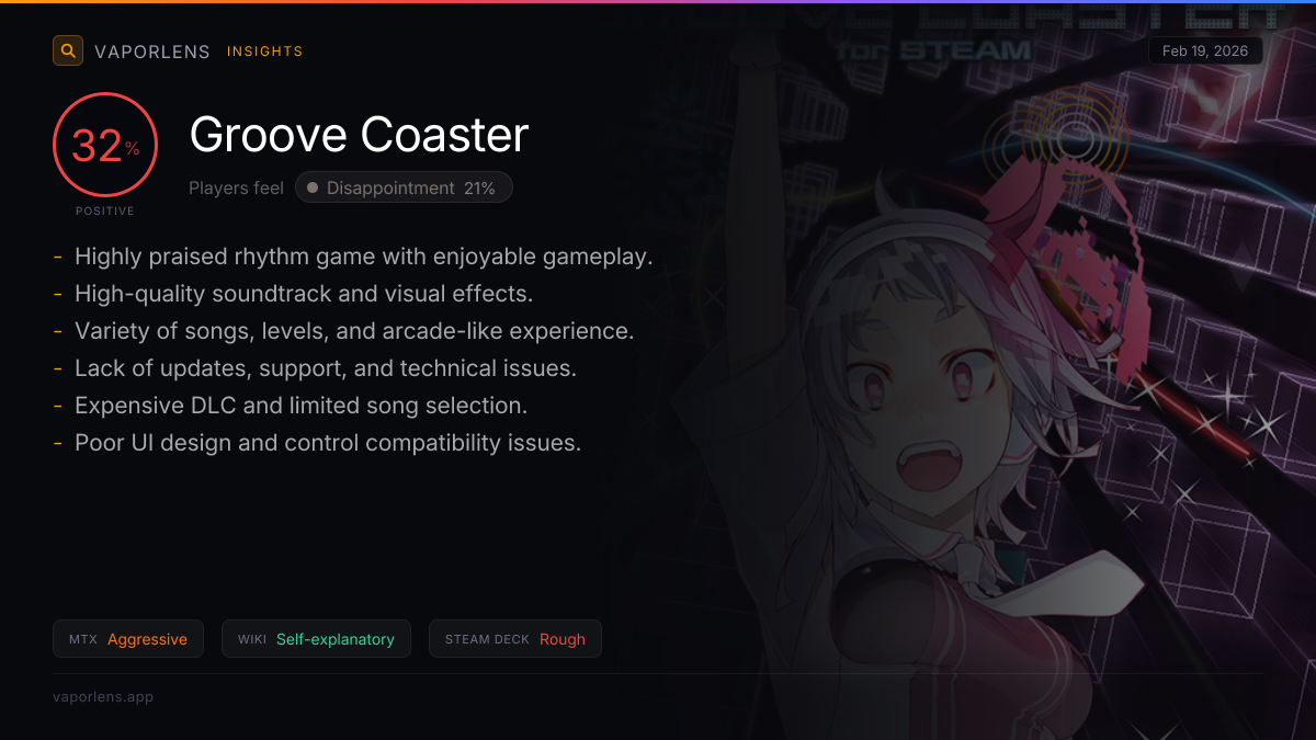 The game is criticized for its aggressive DLC pricing strategy, which many users find overpriced and not worth the money. While the base game is seen as offering good value, the high cost of additional DLC and in-game items is a significant point of contention. Users also report issues with managing and accessing DLC tracks, further detracting from the experience. Score: 75 / 100