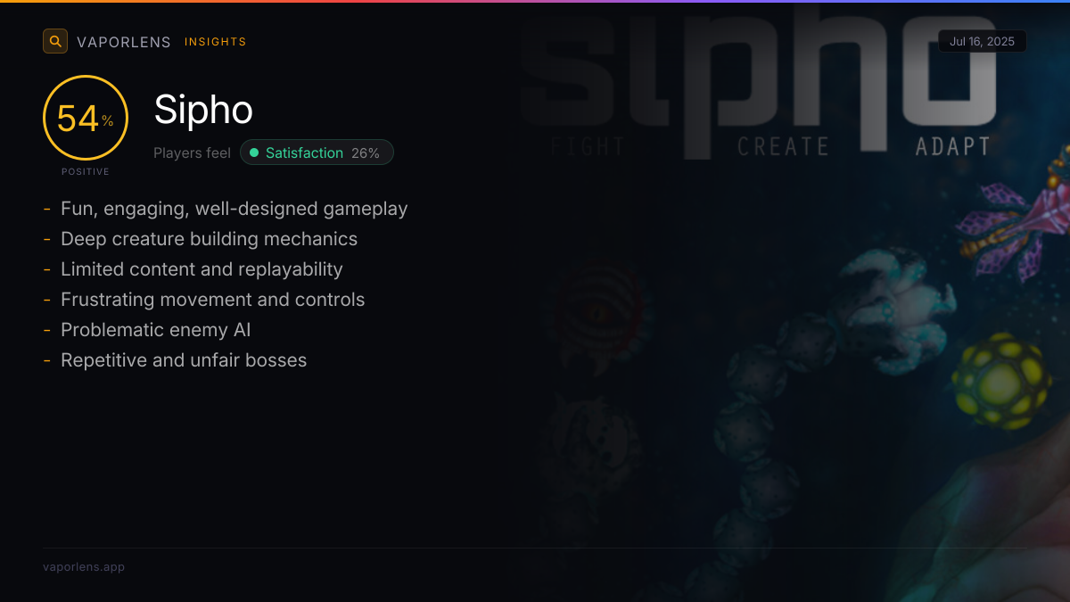 | The creature building and customization mechanics are a major highlight, offering deep and varied possibilities. Players enjoy experimenting with different parts and combinations, leading to diverse and creative builds. | 48% |