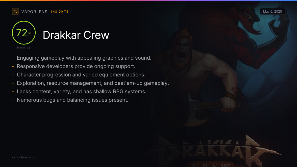 The core gameplay loop, often described as a blend of beat 'em up and RPG elements with Viking themes, is engaging and enjoyable. Players appreciate the combination of combat, exploration, and management aspects, finding it both fun and potentially addictive.