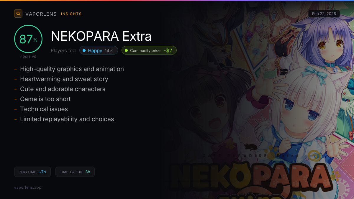 The game offers a cozy and heartfelt experience, enriching the overall NEKOPARA series. It is recommended for those who enjoy emotional and narrative-driven games.