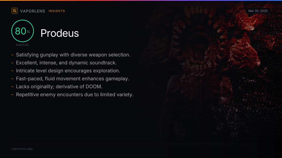 Many reviewers recommend Prodeus, especially to fans of classic FPS games like Doom and Quake. They praise its fast-paced action, retro aesthetics, and satisfying gameplay. Some consider it a standout title in the boomer shooter genre, while others suggest it's a great entry point for newcomers.